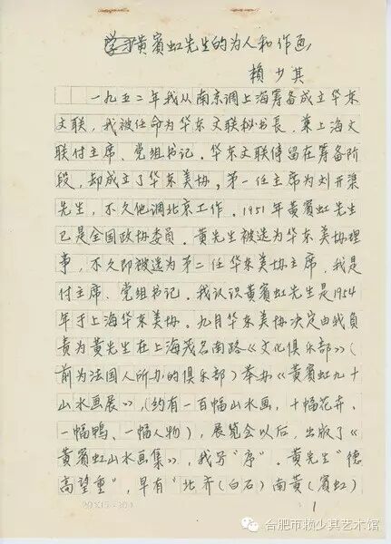 《黄宾虹先生的为人和作画》-赖少其手稿(部分)