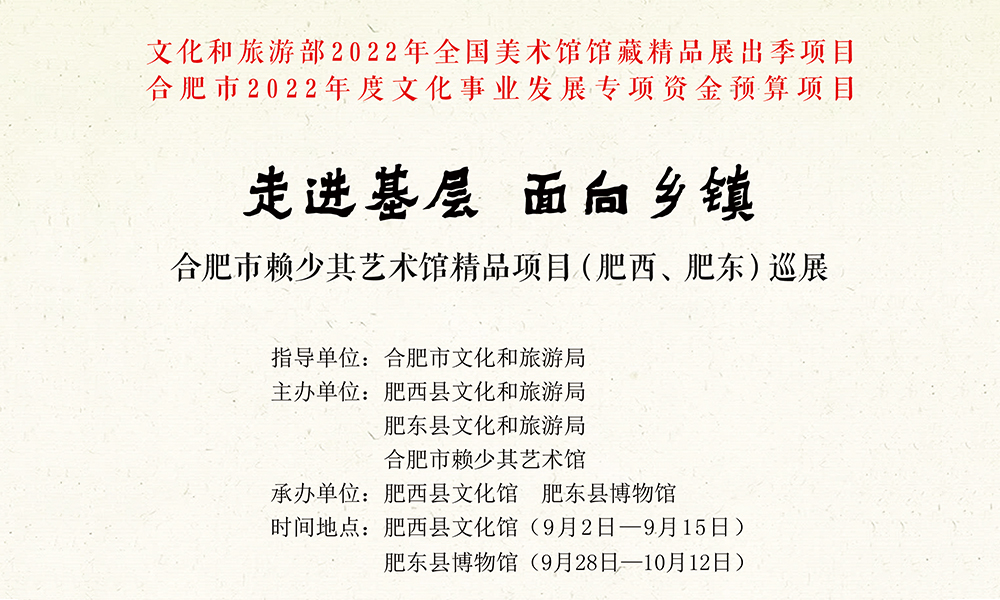 合肥市赖少其艺术馆策划安排入选文旅部及中共合肥市委宣传部的精品项目先后在合肥市辖肥西县、肥东县举办巡展活动,推动优质藏品资源共享,丰富基层人民文化生活。